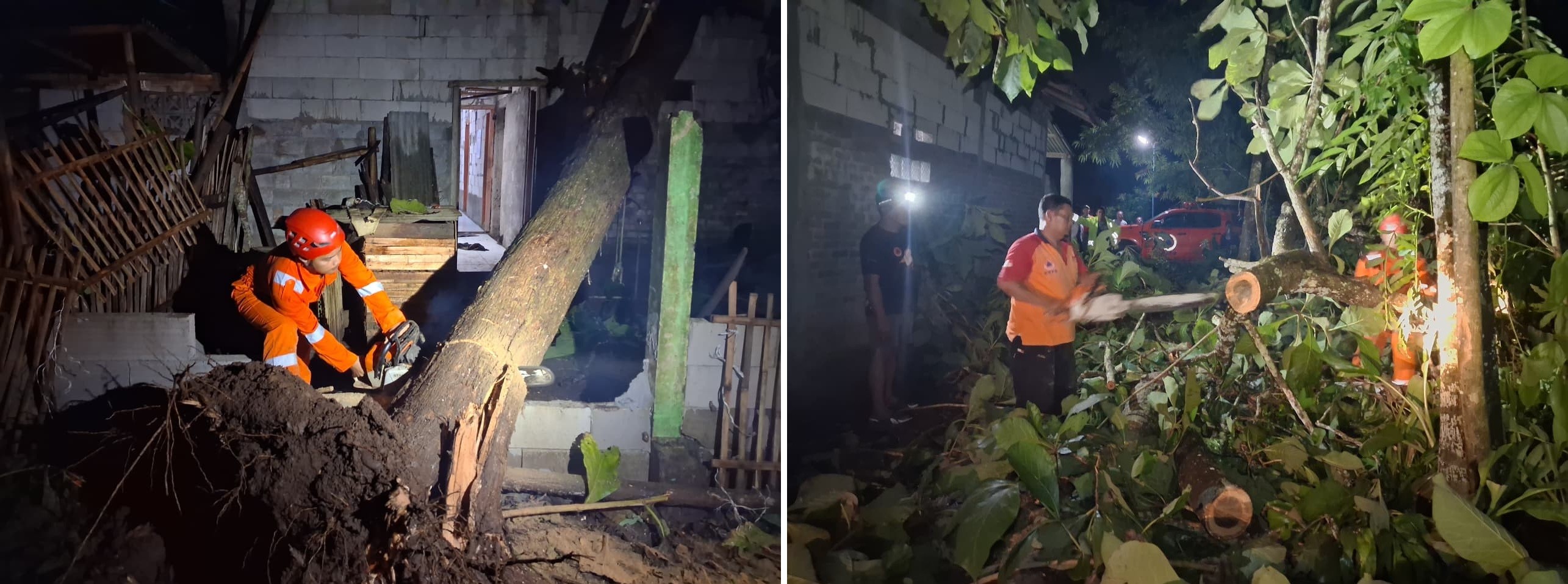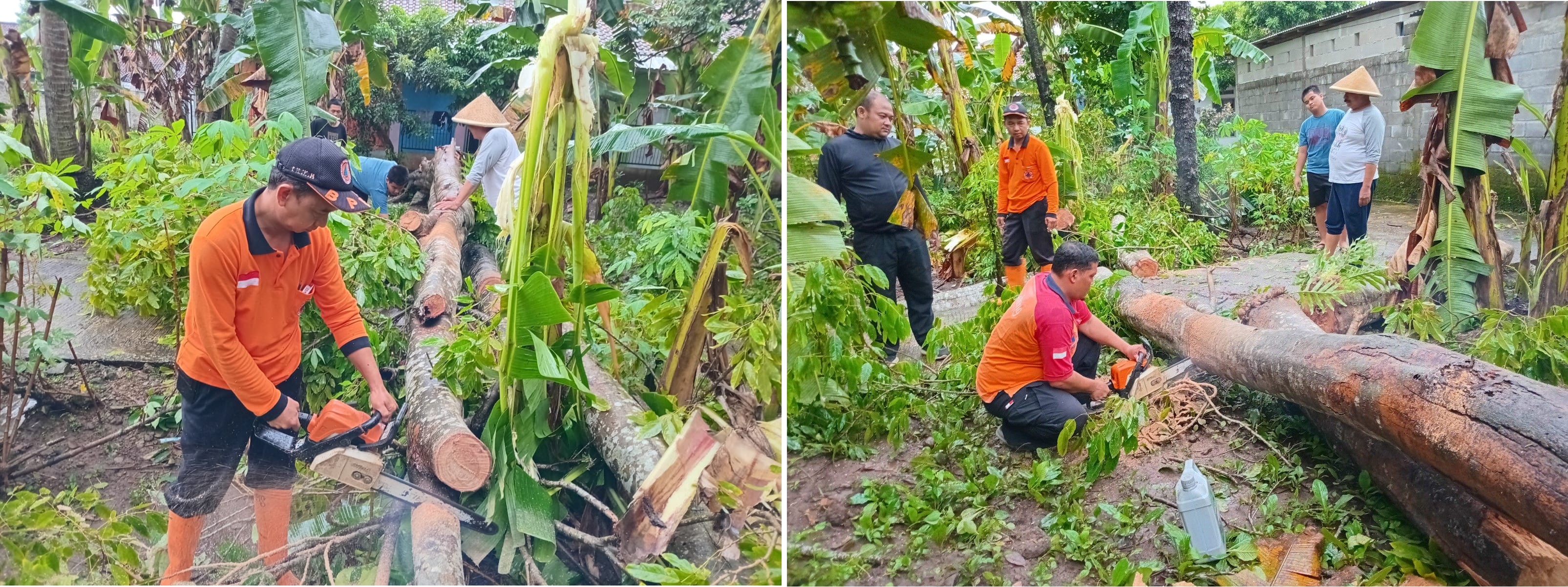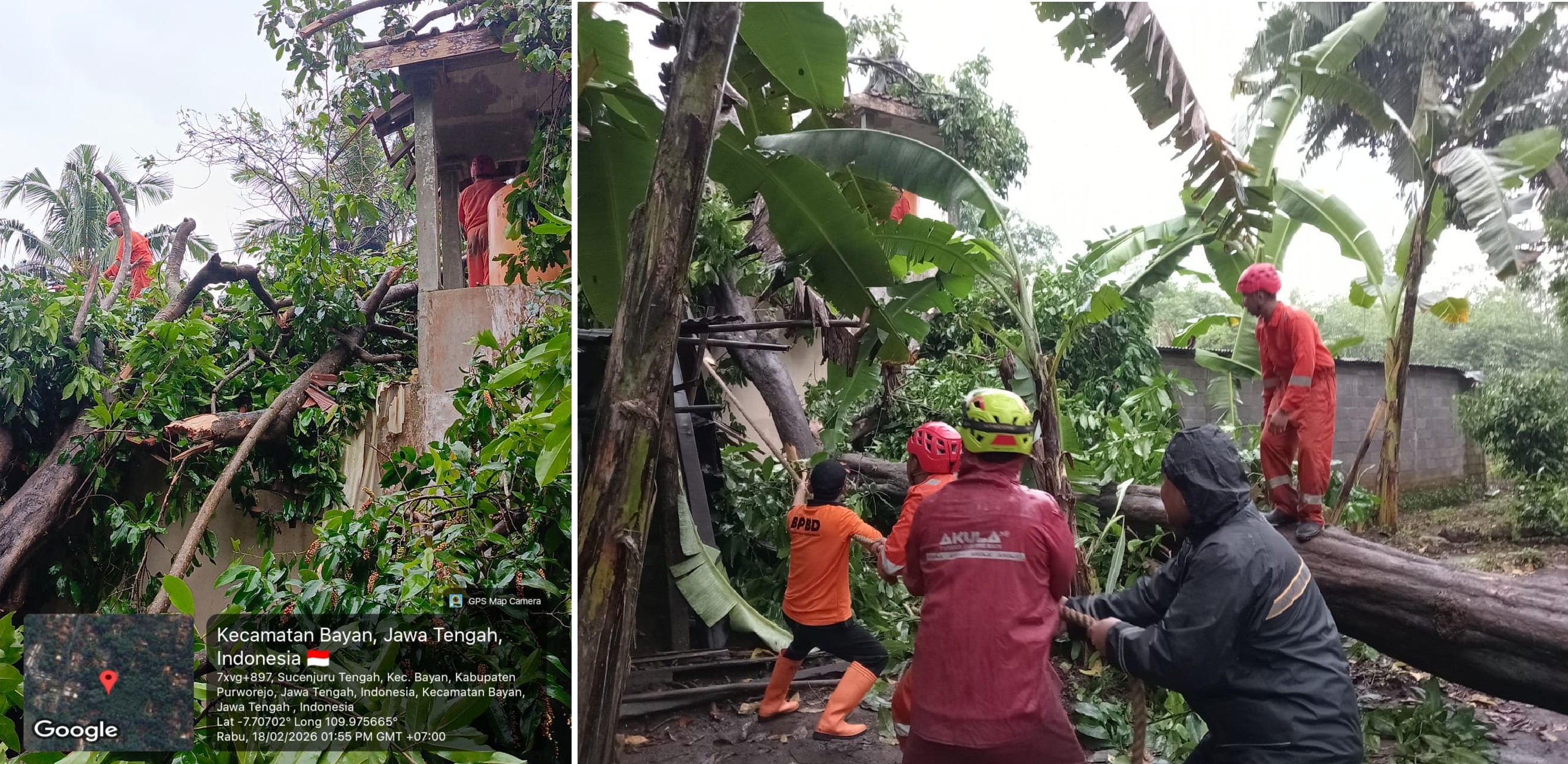 - POHON JATI TIMPA RUMAH WARGA DI DESA POGUNGKALANGAN, TRC BPBD LAKUKAN EVAKUASI